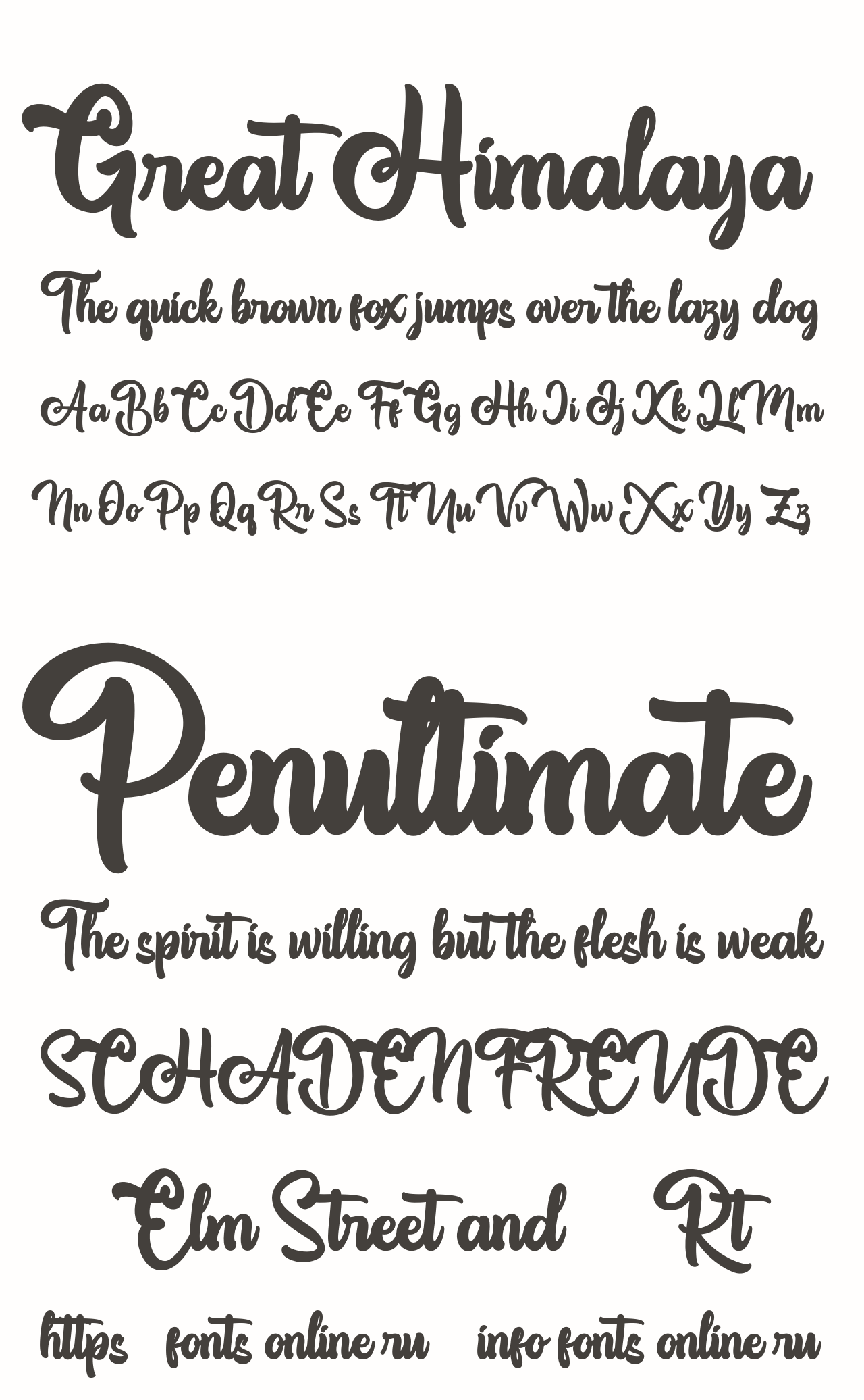 Шрифт Great Himalaya. Гарнитура содержит 2 файла и поддерживает 12 языков. Можно использовать в не коммерческой деятельности. Разработка Great Himalaya велась Thirtypath.
