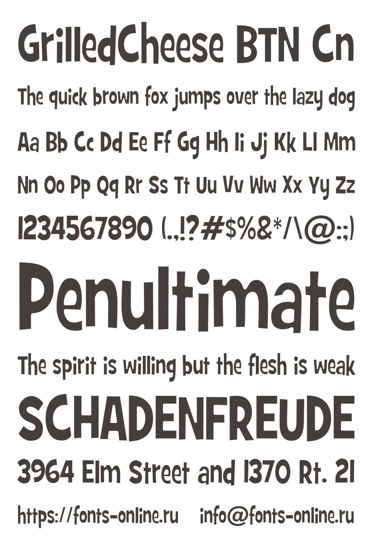 Шрифт GrilledCheese BTN Cn. Гарнитура содержит 1 файл и поддерживает 43 языка.
