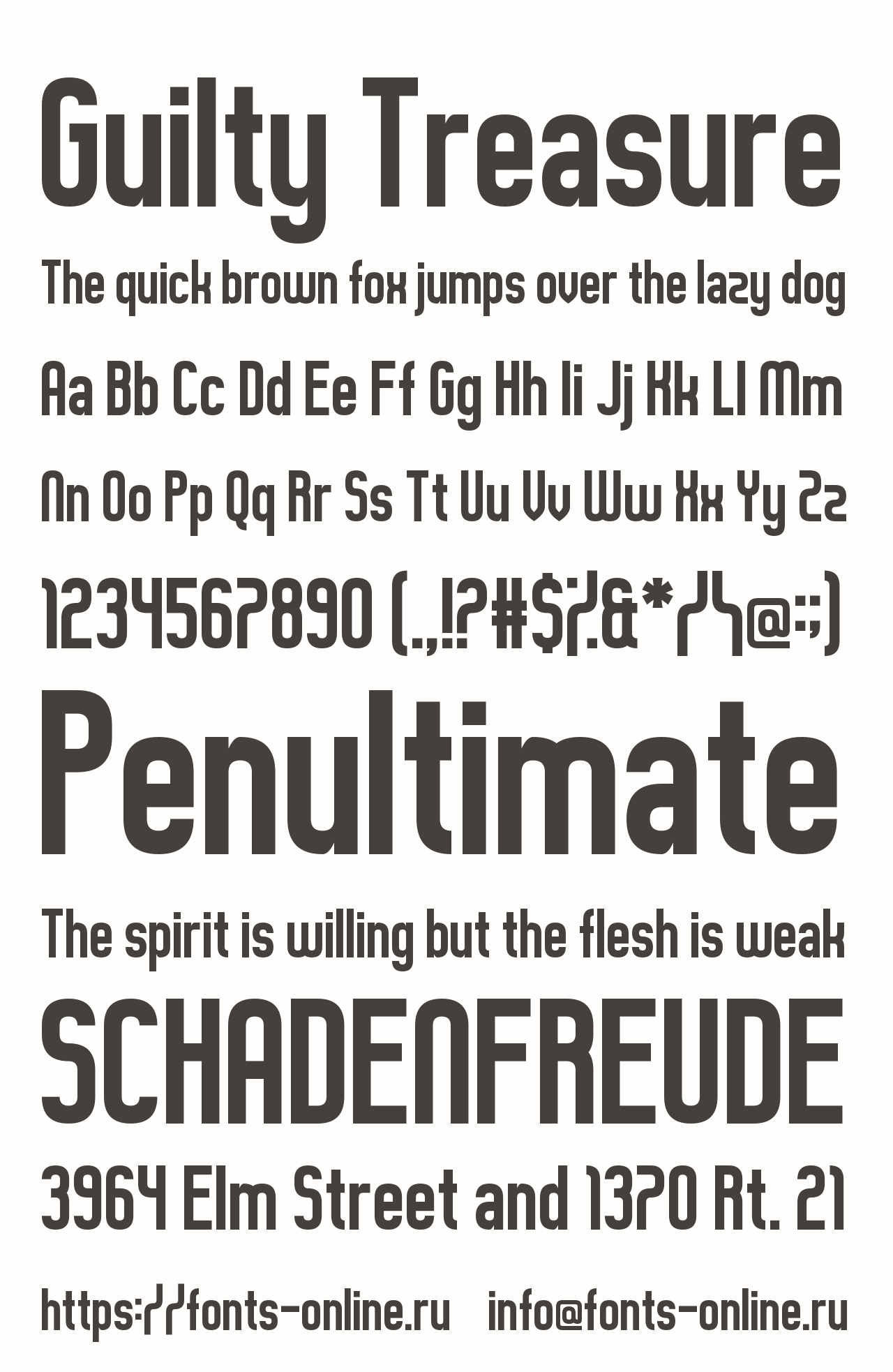 Шрифт Guilty Treasure. Гарнитура содержит 1 файл и поддерживает 37 языков. Можно использовать в не коммерческой деятельности. Разработка Guilty Treasure велась Chequered Ink.