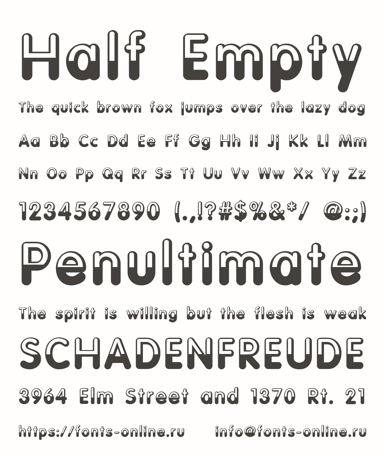 Шрифт Half Empty. Гарнитура содержит 1 файл и поддерживает 41 язык. Можно использовать в коммерческой и не коммерческой деятельности.