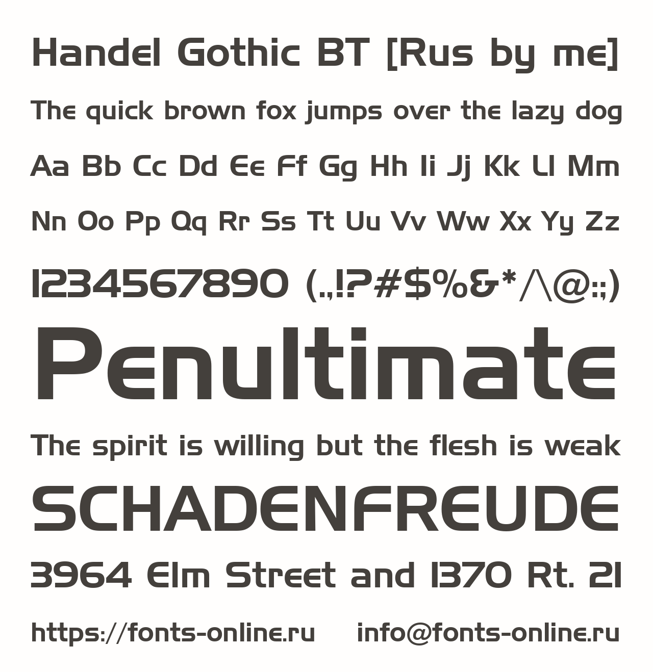 Handel Gothic BT [Rus by me] PinterestFacebookTwitter Скачать Handel Gothic BT [Rus by me] Тестировать Handel Gothic BT [Rus by me] Сообщить об ошибке Шрифт Handel Gothic BT [Rus by me]. Гарнитура содержит 1 файл и поддерживает 55 языков. Copyright Copyright 1990-1993 Bitstream Inc. All rights reserved. Дополнительная информация Категории Шрифты без засечек Шрифты для заголовков Шрифты для текста Языки Албанский Английский Африкаанс Баскский Белорусский Болгарский Боснийский Бретонский Букмол Венгерский Волапюк Галисийский Датский Зулу Индонезийский Ирландский Исландский Испанский Итальянский Каталанский Кечуанский Корнский Латышский Литовский Люксембургский Македонский Малагасийский Мэнский Немецкий Нидерландский Новонорвежский Оромо Польский Португальский Романшский Руанда Рунди Русский Санго Северный ндебеле Сербский Словенский Сомалийский Суахили Турецкий Узбекский Фарерский Финский Французский Хорватский Чеченский Шведский Шона Шотландский Эстонский