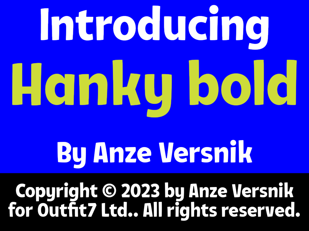 Hanky Bold PinterestFacebookTwitter Скачать Hanky Bold Тестировать Hanky Bold Сообщить об ошибке Шрифт Hanky Bold. Гарнитура содержит 1 файл и поддерживает 70 языков. Изображения Copyright Copyright © 2023 by Anze Versnik for Outfit7 Ltd.. All rights reserved. Дополнительная информация Категории Комические шрифты Тематические шрифты Шрифты без засечек Шрифты для заголовков Шрифты для текста Языки Азербайджанский Албанский Английский Африкаанс Баскский Белорусский Болгарский Боснийский Бретонский Букмол Валлийский Венгерский Волапюк Вьетнамский Галисийский Гренландский Датский Западнофризский Зулу Игбо Индонезийский Ирландский Исландский Испанский Итальянский Каталанский Кечуанский Кикуйю Корнский Латышский Литовский Луганда Люксембургский Македонский Малагасийский Мальтийский Мэнский Немецкий Нидерландский Новонорвежский Оромо Осетинский Польский Португальский Романшский Руанда Румынский Рунди Русский Санго Северносаамский Северный ндебеле Сербский Словацкий Словенский Сомалийский Суахили Турецкий Узбекский Фарерский Финский Французский Хорватский Чеченский Чешский Шведский Шона Шотландский Эсперанто Эстонский