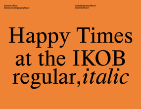 Шрифт Happy Times at the IKOB. Гарнитура содержит 2 файла и поддерживает 36 языков. Разработка Happy Times at the IKOB велась Lucas Le Bihan.
