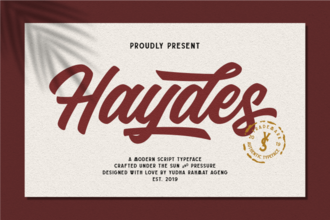Шрифт Haydes. Гарнитура содержит 1 файл и поддерживает 12 языков. Можно использовать в не коммерческой деятельности. Разработка Haydes велась Ydhra Studio.