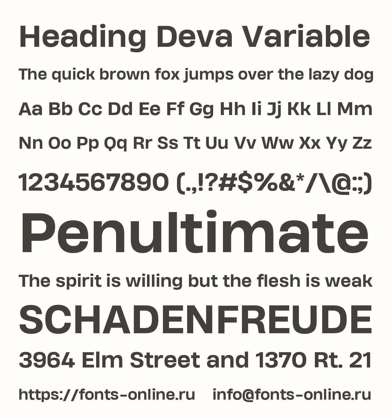 Heading Deva Variable Вариативный шрифт PinterestFacebookTwitter Скачать Heading Deva Variable Тестировать Heading Deva Variable Сообщить об ошибке Heading Deva Variable вариативный шрифт. Гарнитура содержит 1 файл и поддерживает 74 языка. Copyright Copyright 2017 by Studio Kmzero & Zetafonts. All rights reserved. Дополнительная информация Категории Шрифты без засечек Шрифты для заголовков Шрифты для текста Языки Албанский Английский Африкаанс Баскский Белорусский Болгарский Боснийский Бретонский Букмол Валлийский Венгерский Волапюк Вьетнамский Галисийский Гренландский Греческий Датский Западнофризский Зулу Игбо Индонезийский Ирландский Исландский Испанский Итальянский Йоруба Каталанский Кечуанский Кикуйю Корнский Латышский Литовский Луганда Люксембургский Македонский Малагасийский Мальтийский Маратхи Мэнский Немецкий Непальский Нидерландский Новонорвежский Оромо Польский Португальский Романшский Руанда Румынский Рунди Русский Санго Северносаамский Северный ндебеле Сербский Словацкий Словенский Сомалийский Суахили Турецкий Узбекский Украинский Фарерский Финский Французский Хинди Хорватский Чеченский Чешский Шведский Шона Шотландский Эсперанто Эстонский