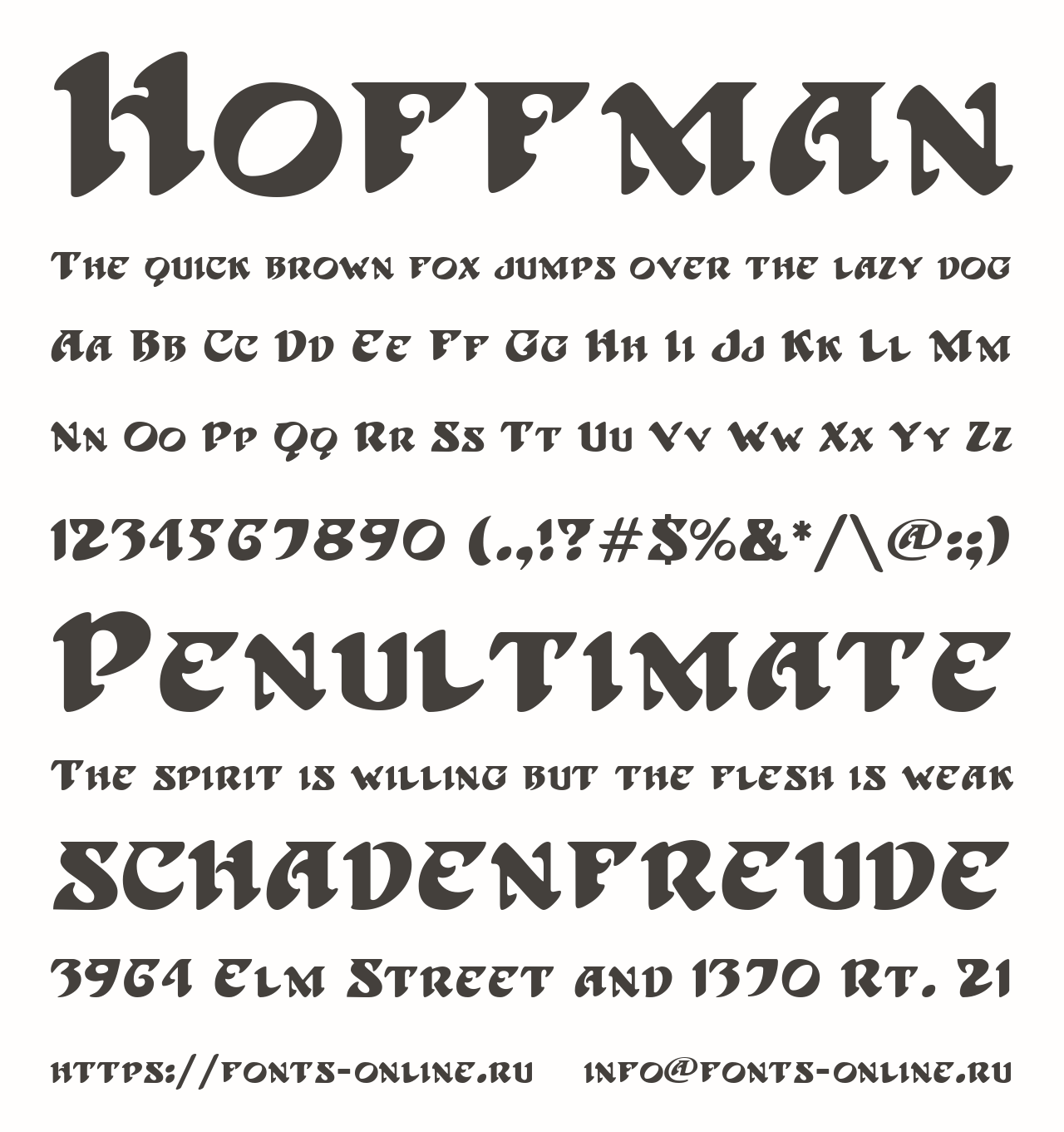 Шрифт Hoffman. Гарнитура содержит 1 файл и поддерживает 37 языков. Можно использовать в коммерческой и не коммерческой деятельности.