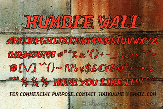 Шрифт Humble Wall. Гарнитура содержит 1 файл и поддерживает 12 языков. Можно использовать в не коммерческой деятельности. Разработка Humble Wall велась Poemhaiku.