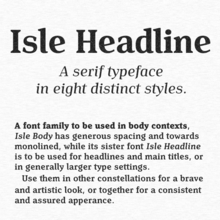 Шрифт Isle Headline PERSONAL USE. Гарнитура содержит 8 файлов и поддерживает 58 языков. Можно использовать в не коммерческой деятельности. Разработка Isle Headline PERSONAL USE велась Mans Greback.
