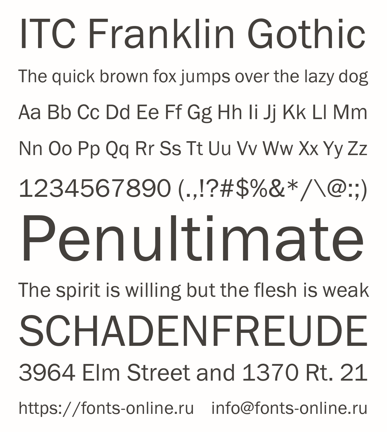 Шрифт ITC Franklin Gothic. Гарнитура содержит 3 файла и поддерживает 19 языков. Разработка ITC Franklin Gothic велась в ParaType.