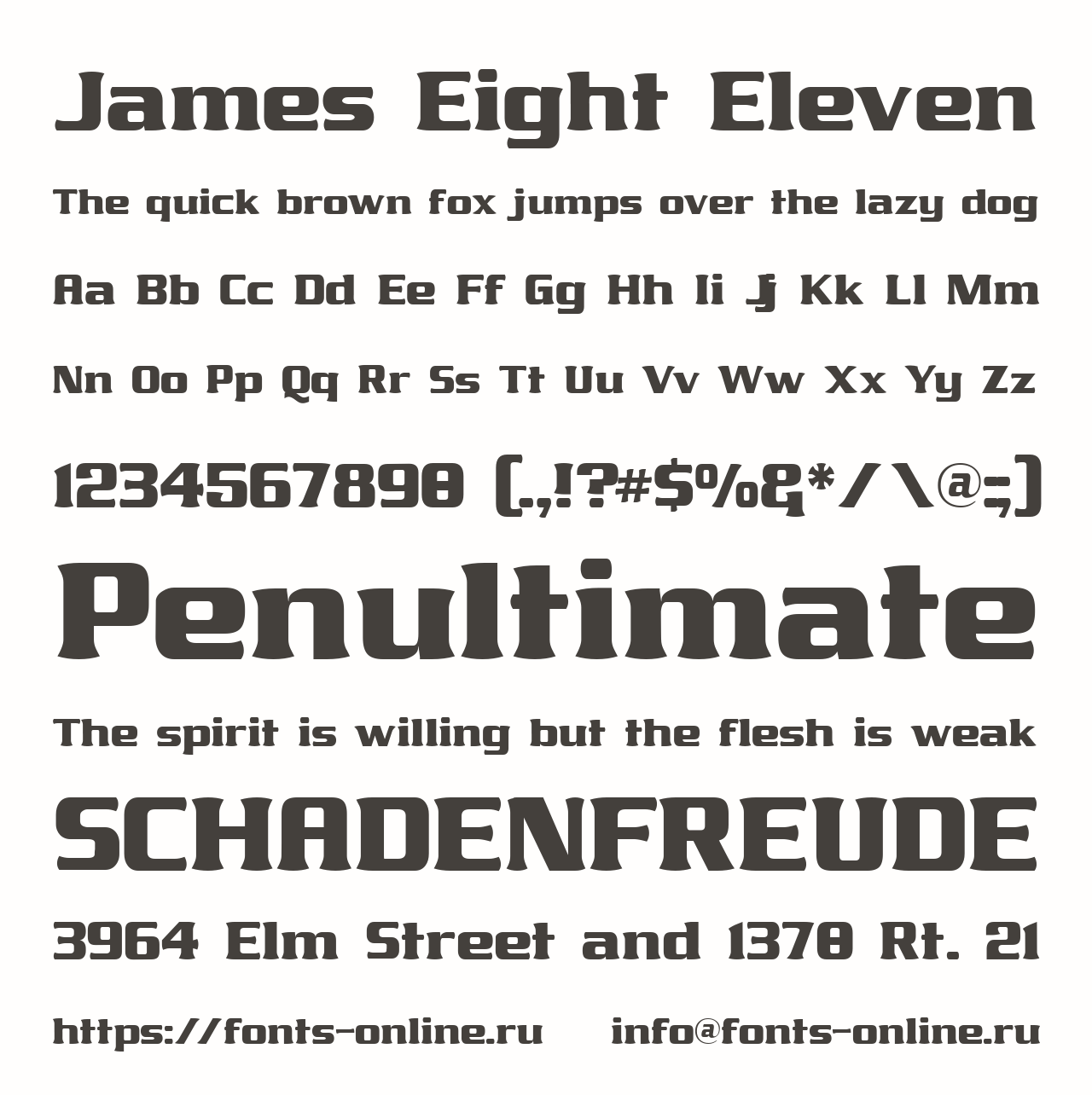 Шрифт James Eight Eleven. Гарнитура содержит 1 файл и поддерживает 39 языков. Можно использовать в коммерческой и не коммерческой деятельности.