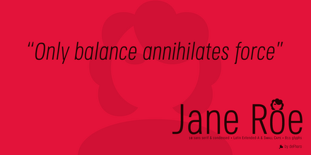 Jane Roe is a family of 10 Sans Serif condensed fonts of geometric construction and neo-Gothic style, a friendly typography with maximum readability, specially drawn for the composition of texts of any size for both printing and screen, signage or headlines and where you need savings in horizontal space.