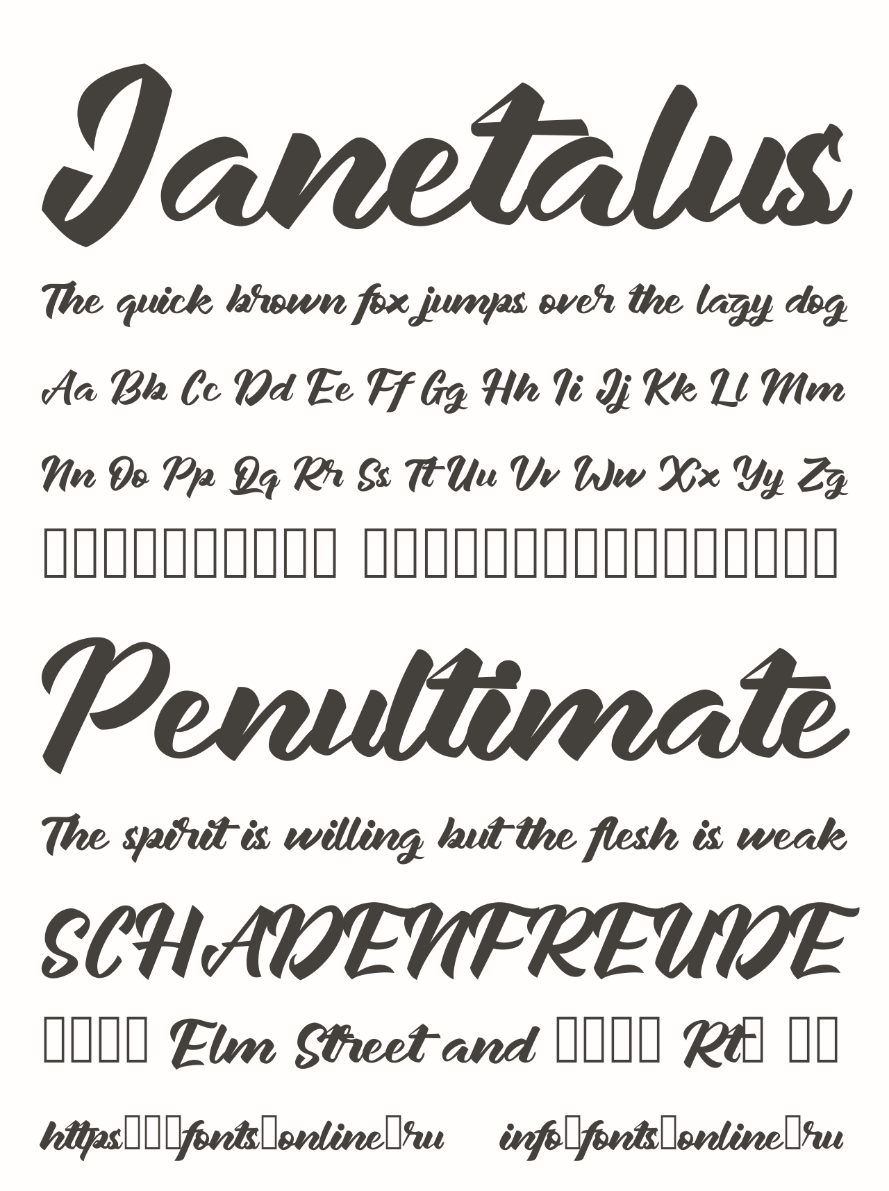 Шрифт Janetalus. Гарнитура содержит 2 файла и поддерживает 12 языков. Можно использовать в не коммерческой деятельности. Разработка Janetalus велась selawetype.
