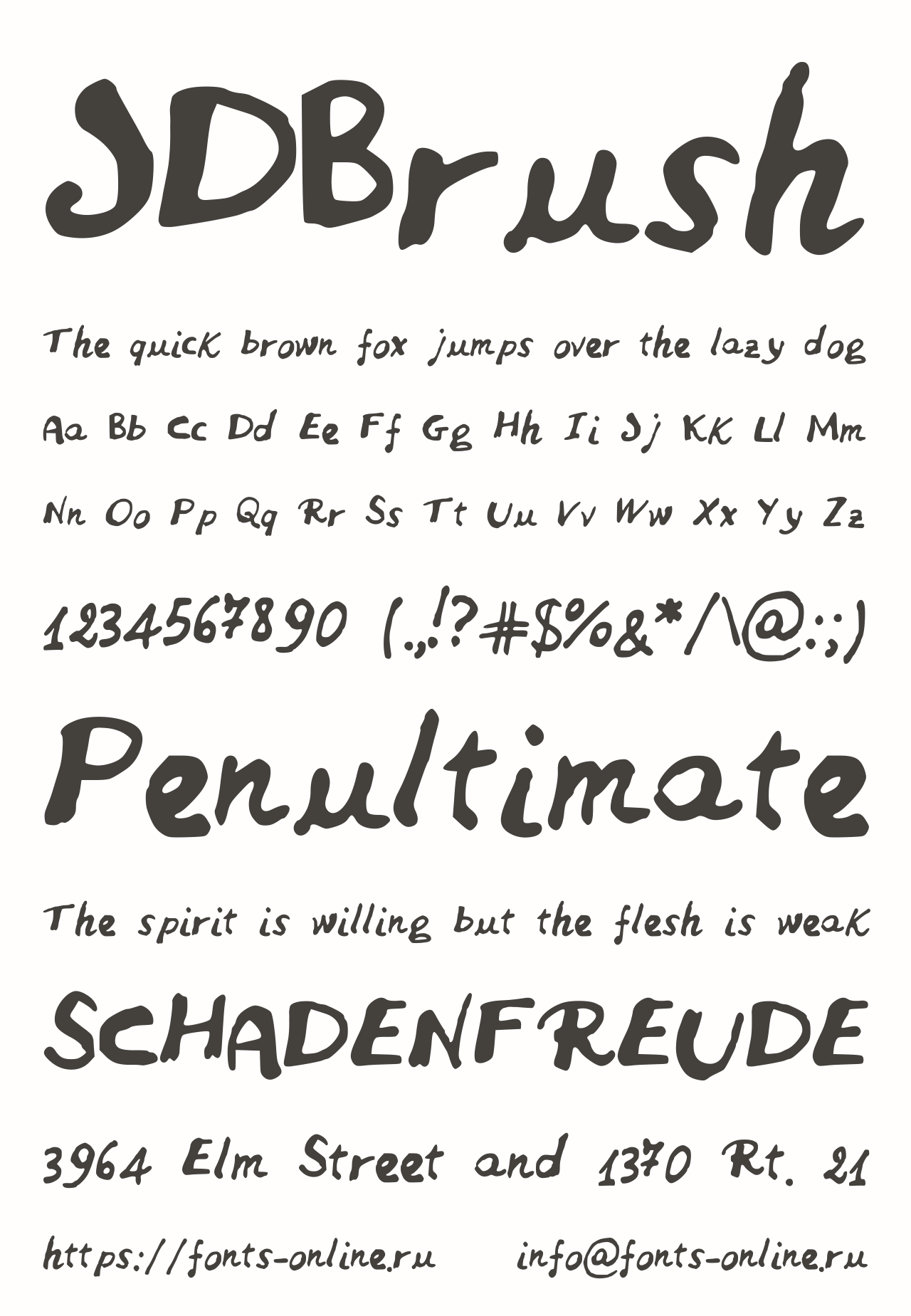 Шрифт JDBrush. Гарнитура содержит 1 файл и поддерживает 18 языков. Можно использовать в коммерческой и не коммерческой деятельности.