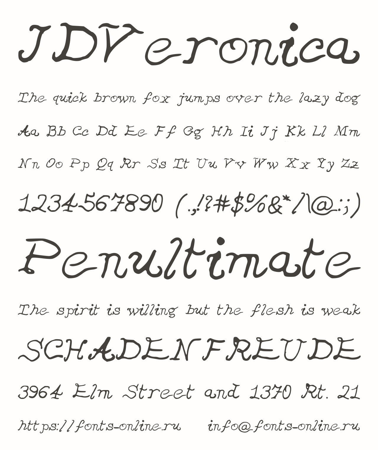 Шрифт JDVeronica. Гарнитура содержит 1 файл и поддерживает 18 языков. Можно использовать в коммерческой и не коммерческой деятельности.