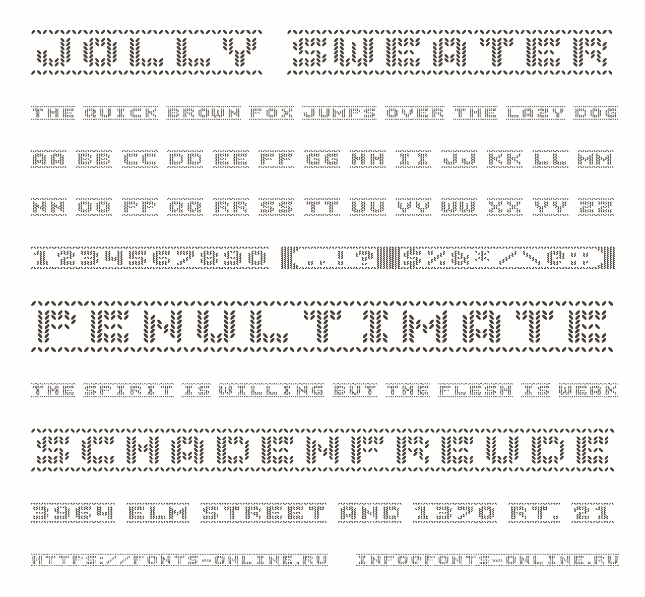 Шрифт Jolly Sweater. Гарнитура содержит 3 файла и поддерживает 49 языков. Лицензия SIL OFL 1.1. Можно использовать в коммерческой и не коммерческой деятельности. Разработка Jolly Sweater велась GGBotNet.