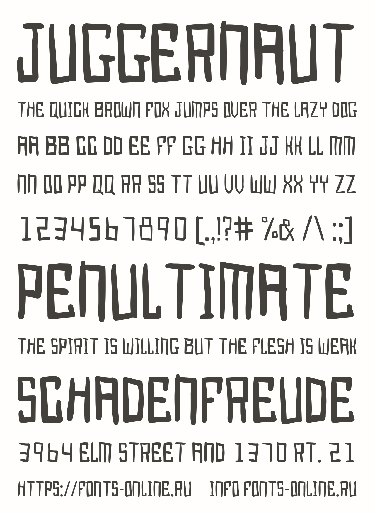 Шрифт Juggernaut. Гарнитура содержит 1 файл и поддерживает 36 языков. Можно использовать в коммерческой и не коммерческой деятельности.
