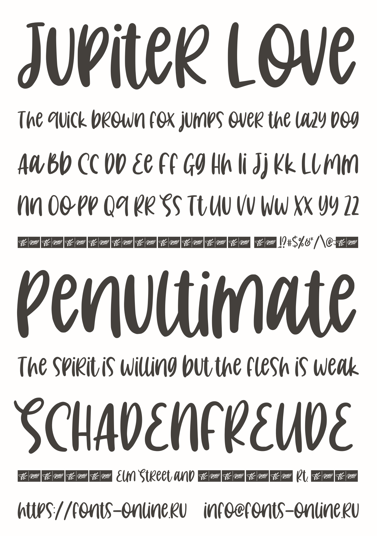 Шрифт Jupiter Love. Гарнитура содержит 2 файла и поддерживает 37 языков. Разработка Jupiter Love велась Typefar.