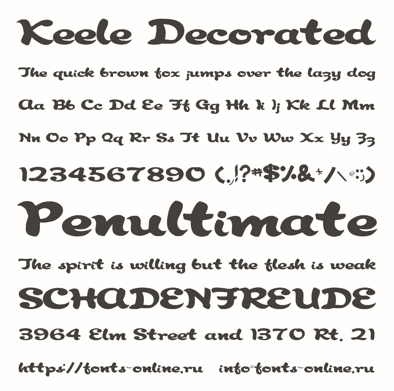 Шрифт Keele Decorated. Гарнитура содержит 1 файл и поддерживает 39 языков. Можно использовать в коммерческой и не коммерческой деятельности.