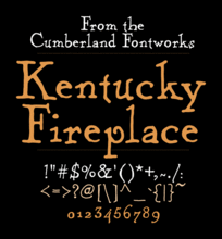 Шрифт Kentucky Fireplace. Гарнитура содержит 2 файла и поддерживает 12 языков. Можно использовать в не коммерческой деятельности. Разработка Kentucky Fireplace велась Cumberland Fontworks.