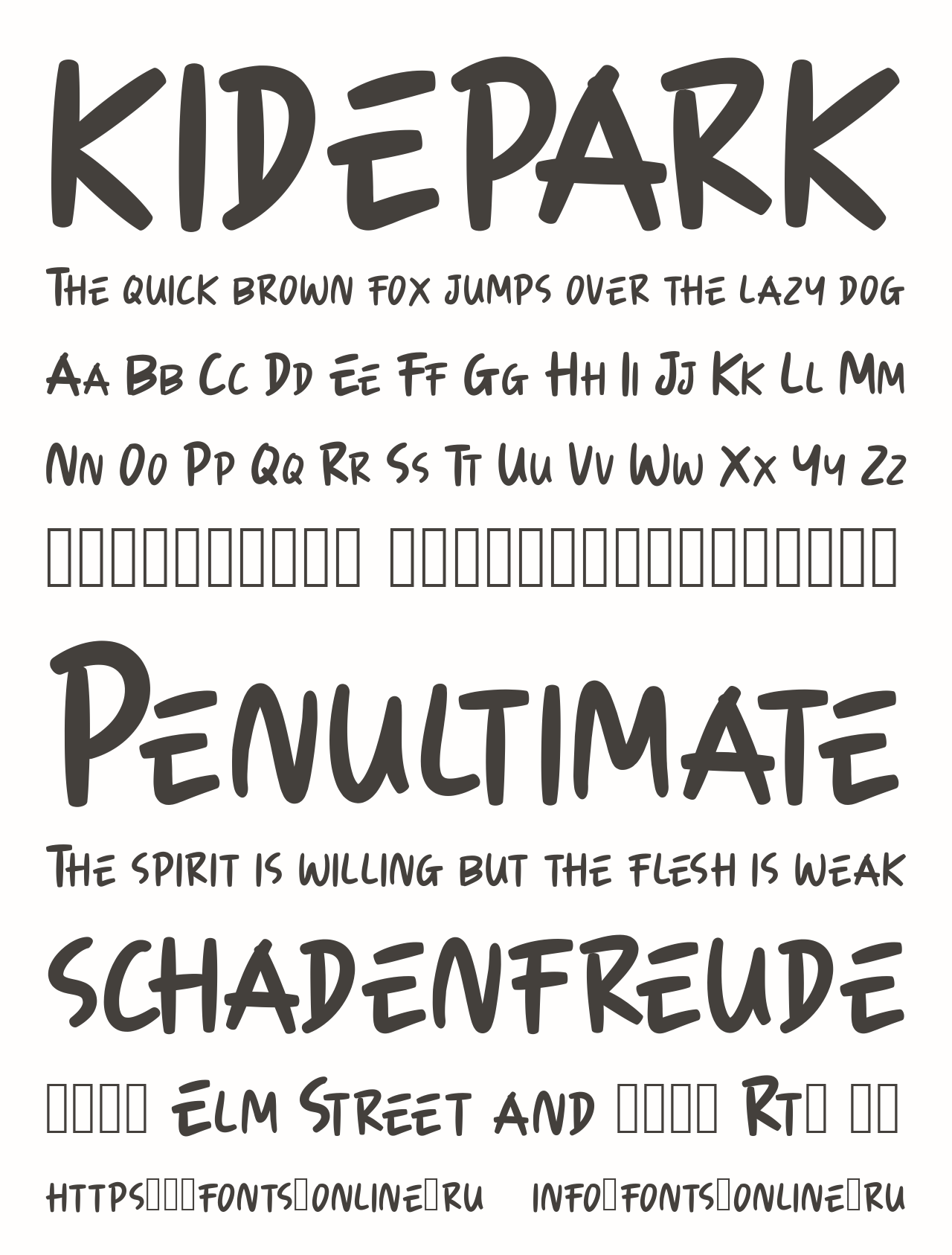 Шрифт KIDEPARK. Гарнитура содержит 2 файла и поддерживает 12 языков. Разработка KIDEPARK велась selawetype.
