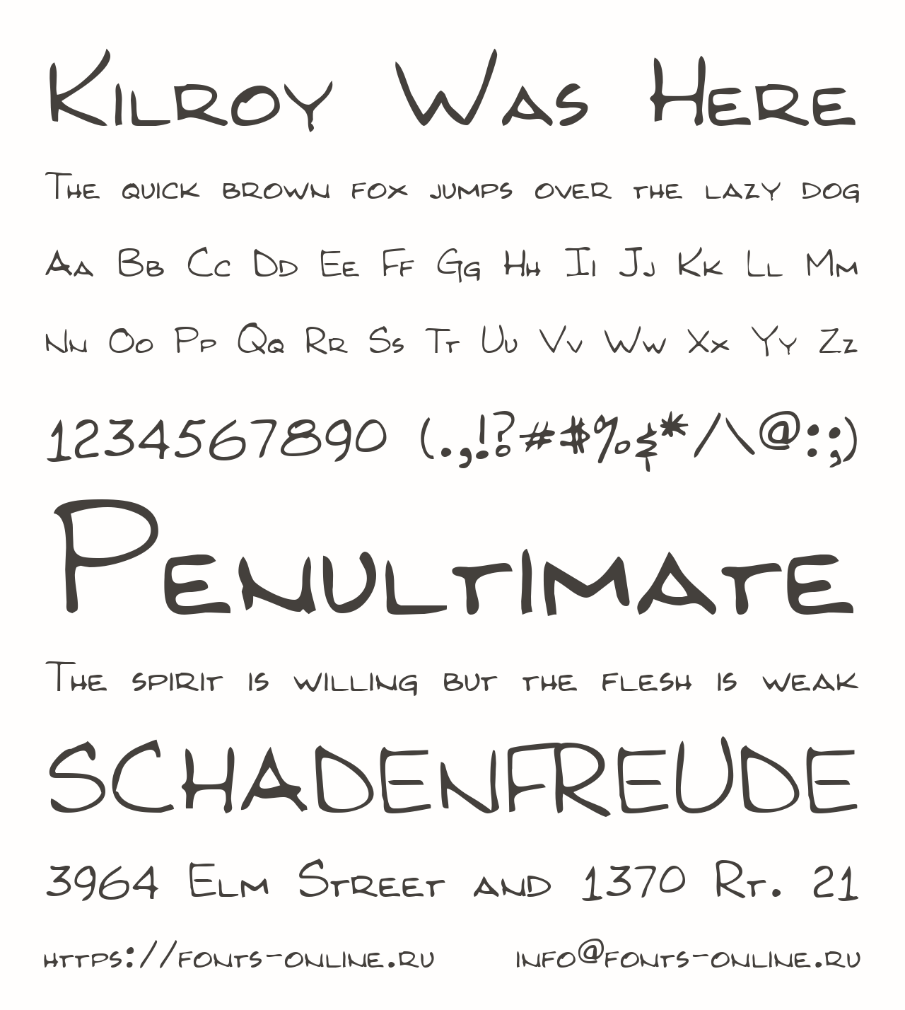 Шрифт Kilroy Was Here. Гарнитура содержит 1 файл и поддерживает 12 языков. Можно использовать в коммерческой и не коммерческой деятельности.