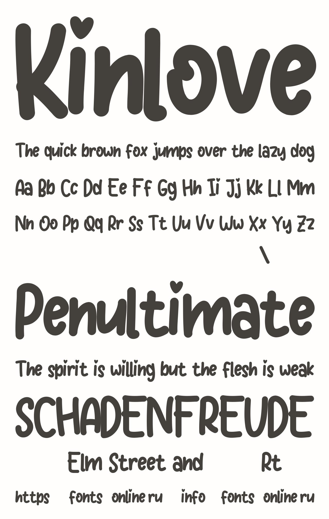 Шрифт Kinlove. Гарнитура содержит 2 файла и поддерживает 39 языков. Можно использовать в не коммерческой деятельности. Разработка Kinlove велась Yusa Studio.