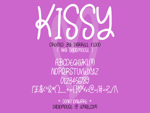 Шрифт Kissy. Гарнитура содержит 1 файл и поддерживает 0 языков. Разработка Kissy велась Darrell Flood.