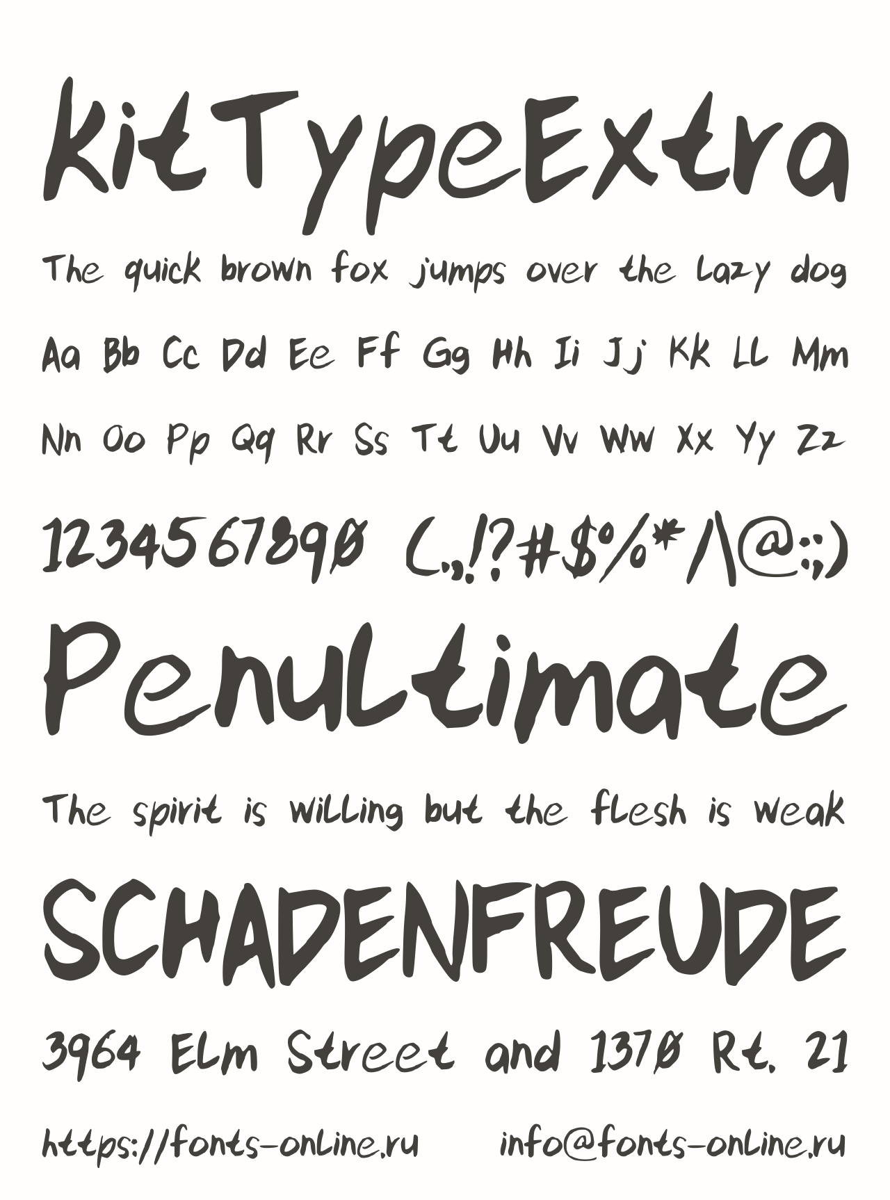Шрифт kitTypeExtra. Гарнитура содержит 1 файл и поддерживает 18 языков. Разработка kitTypeExtra велась Kenneth Lamug.