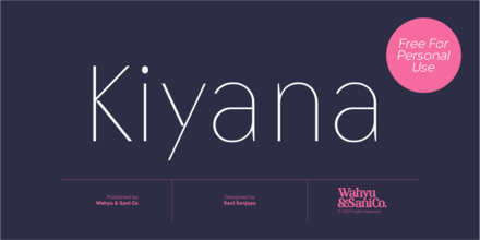 Шрифт Kiyana Display. Гарнитура содержит 1 файл и поддерживает 56 языков. Можно использовать в не коммерческой деятельности. Разработка Kiyana Display велась Sani Sanjaya.