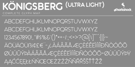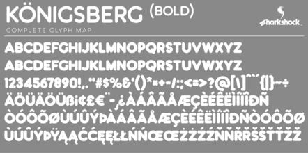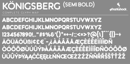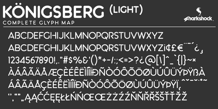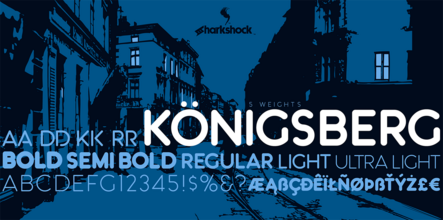 Шрифт Kˆnigsberg. Гарнитура содержит 1 файл и поддерживает 41 язык. Можно использовать в не коммерческой деятельности. Разработка Kˆnigsberg велась Sharkshock.