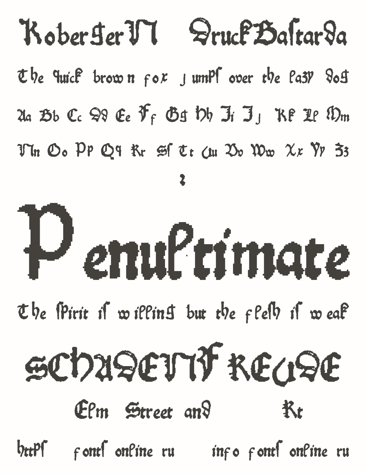 Шрифт KobergerN10DruckBastarda. Гарнитура содержит 1 файл и поддерживает 13 языков. Можно использовать в не коммерческой деятельности.