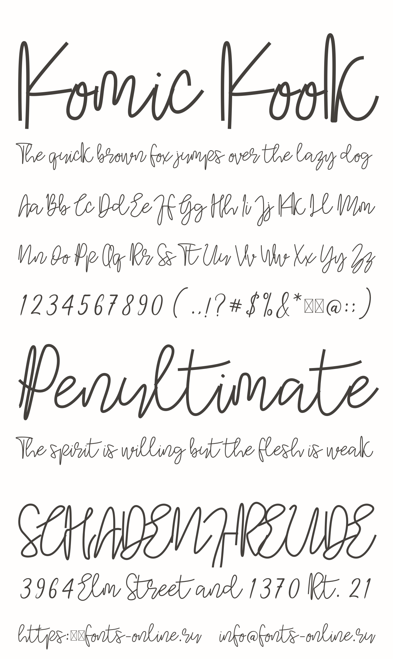 Шрифт Komic Kook. Гарнитура содержит 1 файл и поддерживает 12 языков. Можно использовать в не коммерческой деятельности. Разработка Komic Kook велась Inermedia Studio.