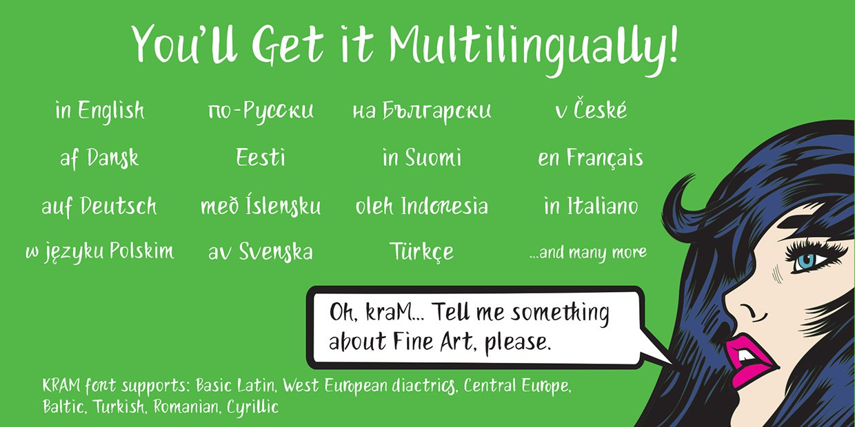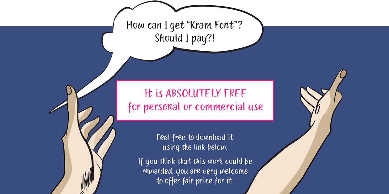 Шрифт kraM. Гарнитура содержит 2 файла и поддерживает 58 языков. Разработка kraM велась Ksenia Semirova.