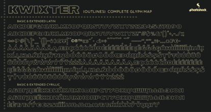 Шрифт Kwixter. Гарнитура содержит 1 файл и поддерживает 64 языка. Разработка Kwixter велась Sharkshock.