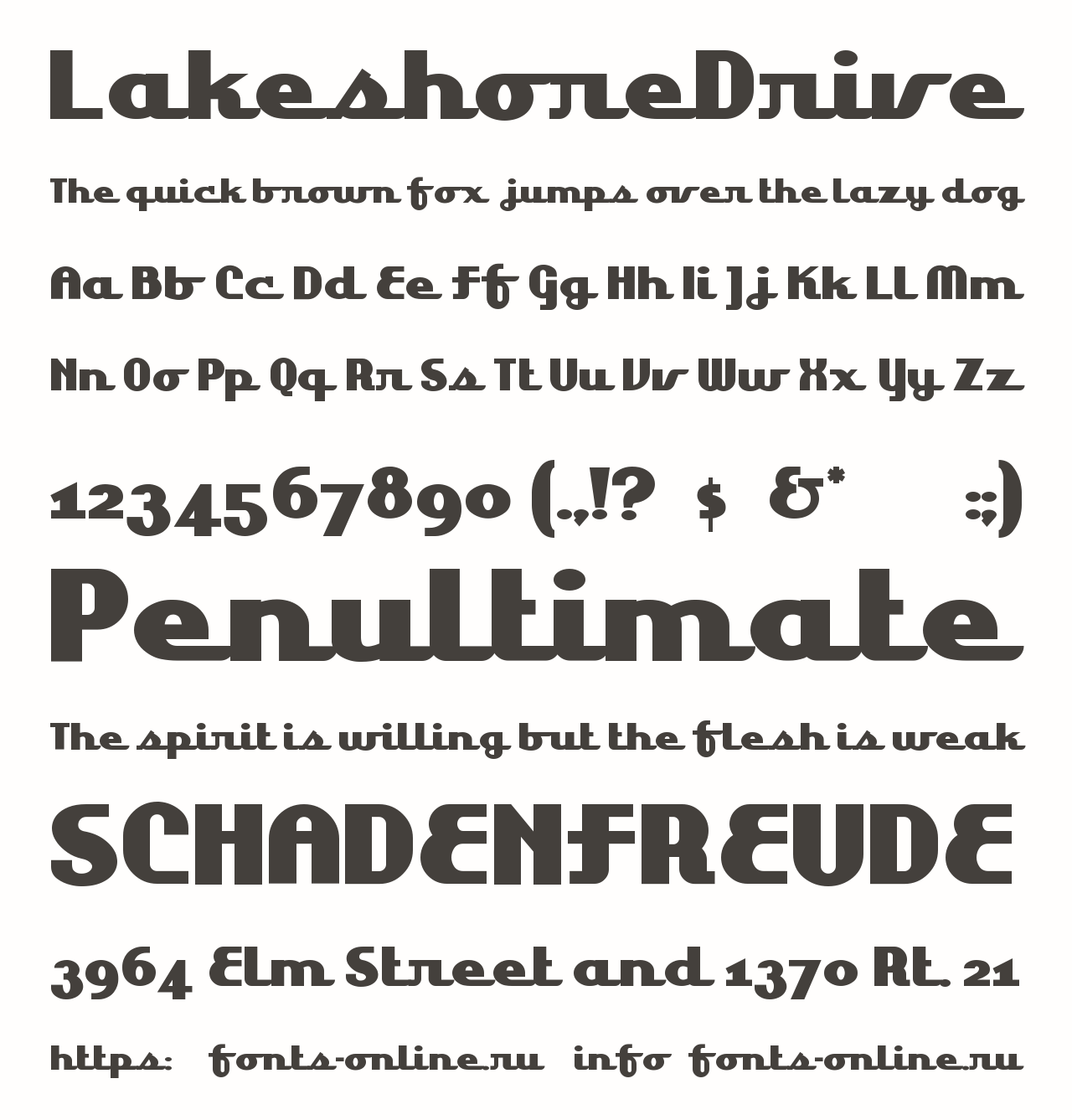 Шрифт LakeshoreDrive. Гарнитура содержит 1 файл и поддерживает 48 языков. Разработка LakeshoreDrive велась Nick's Fonts.