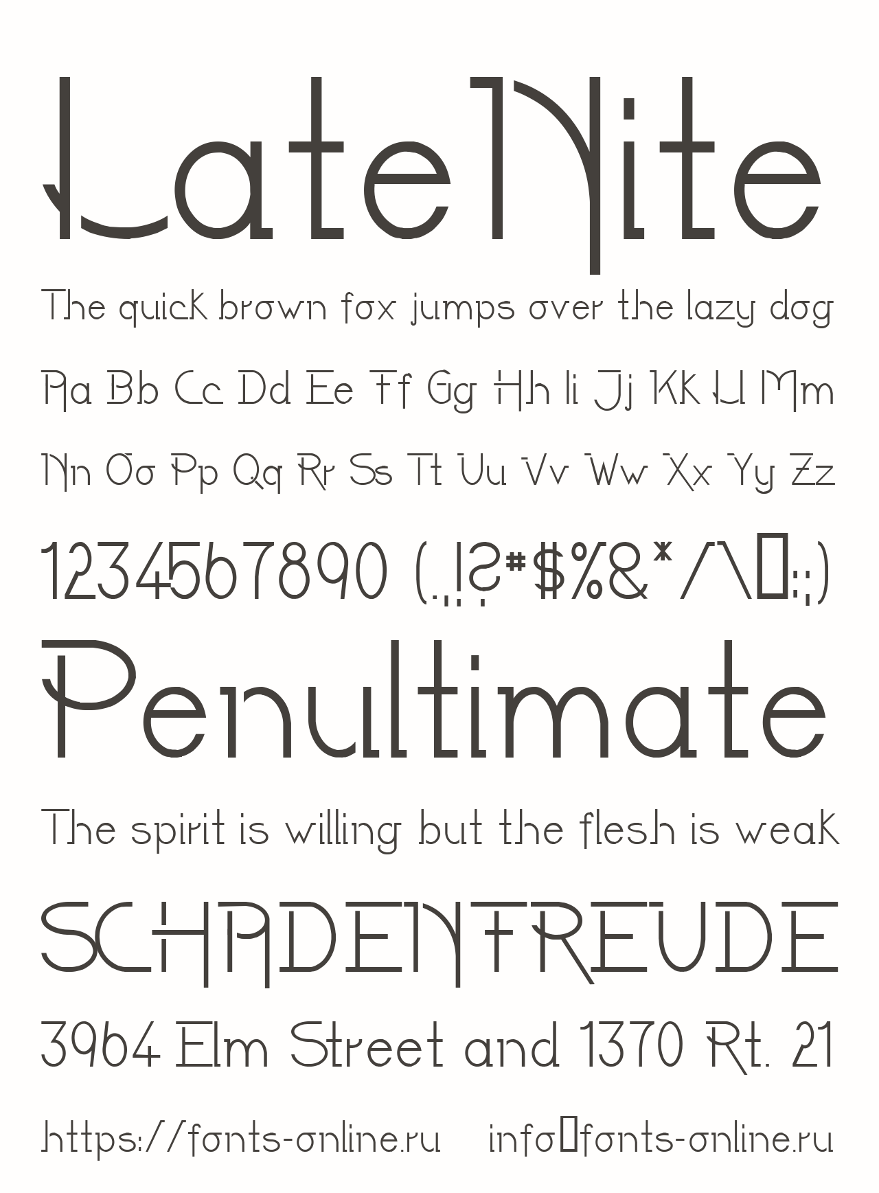 Шрифт LateNite. Гарнитура содержит 1 файл и поддерживает 12 языков. Можно использовать в коммерческой и не коммерческой деятельности.