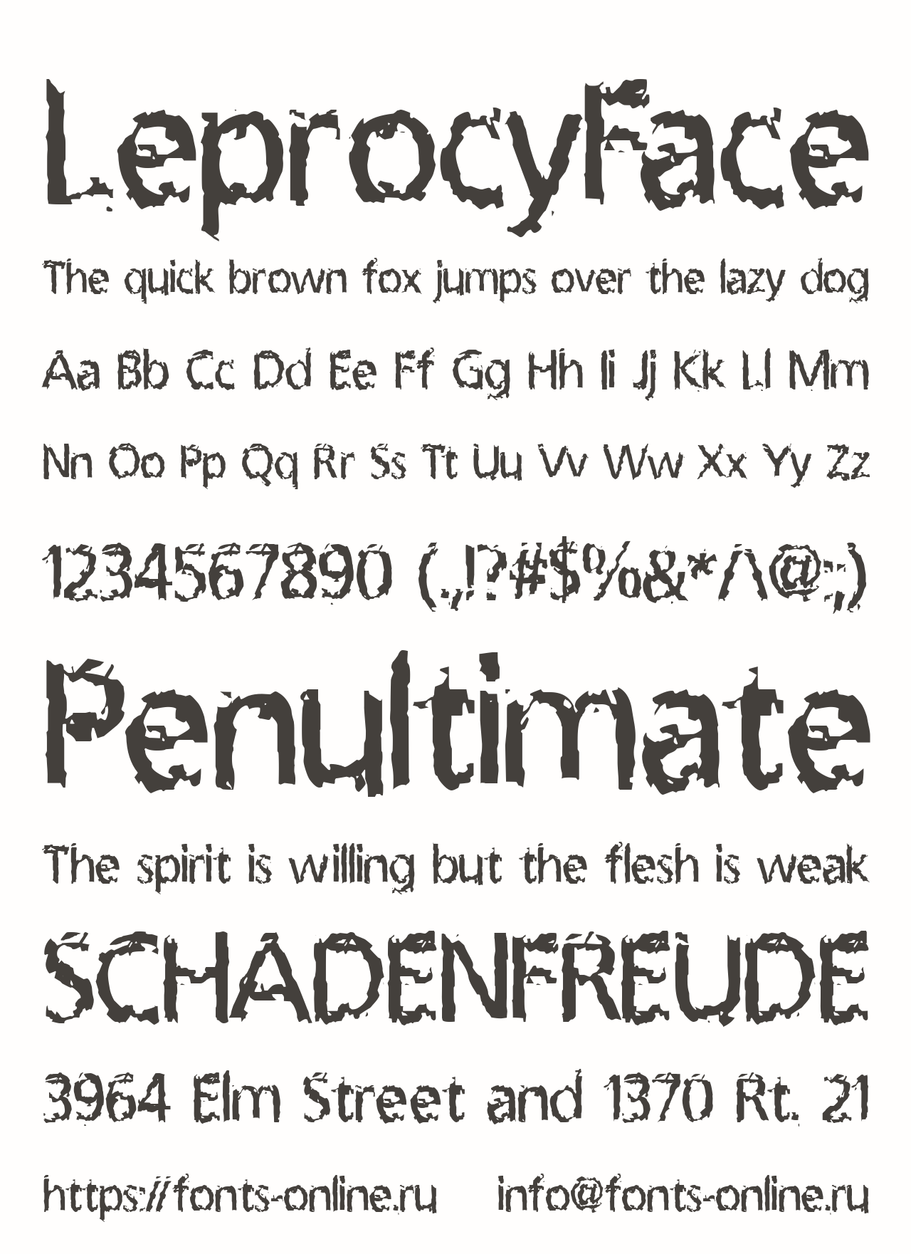Шрифт LeprocyFace. Гарнитура содержит 1 файл и поддерживает 41 язык. Можно использовать в коммерческой и не коммерческой деятельности.