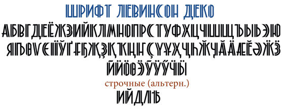 Шрифт Levinson Deco. Гарнитура содержит 1 файл и поддерживает 17 языков. Разработка Levinson Deco велась Alexandra Gophmann.