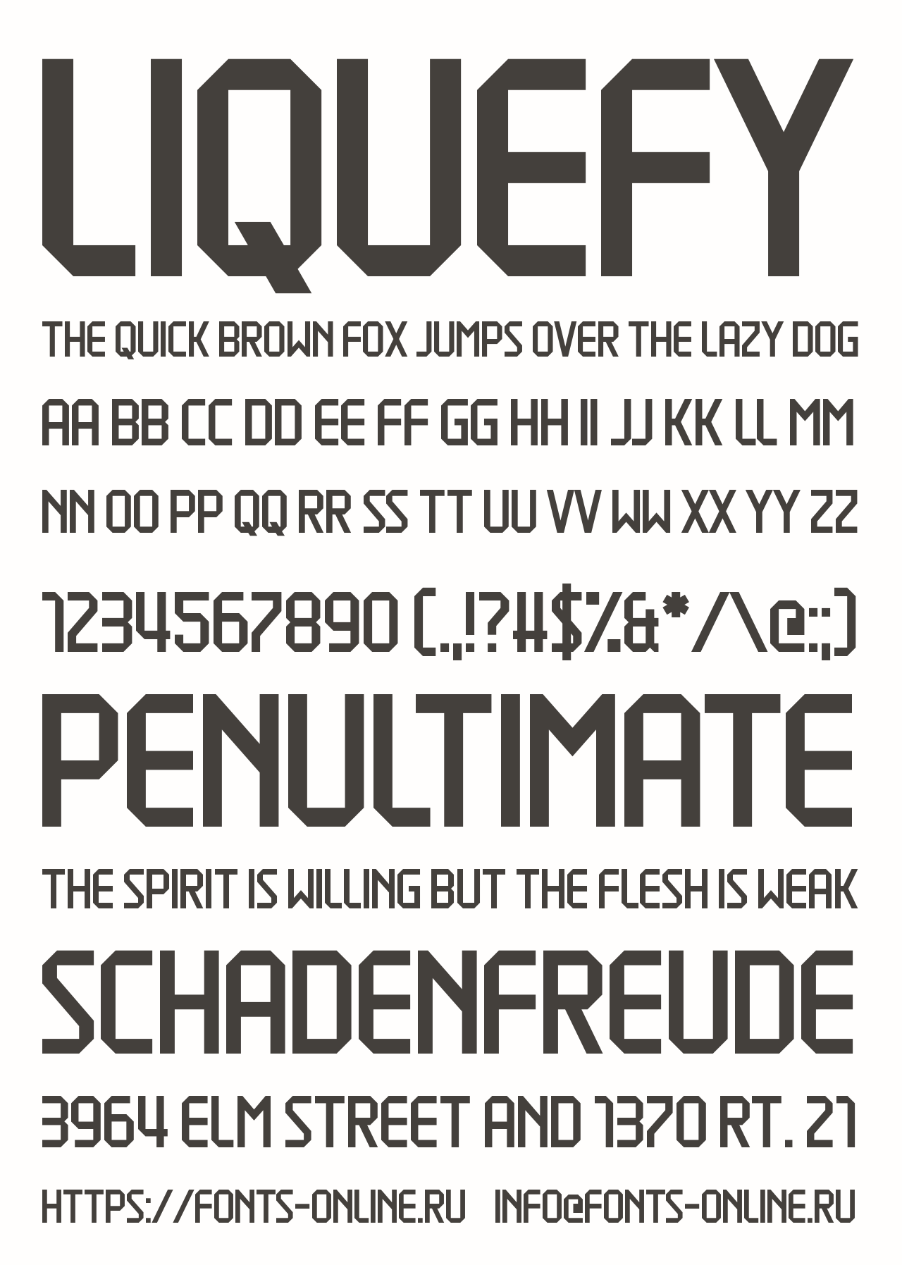 Шрифт Liquefy. Гарнитура содержит 1 файл и поддерживает 12 языков. Можно использовать в не коммерческой деятельности. Разработка Liquefy велась Chequered Ink.
