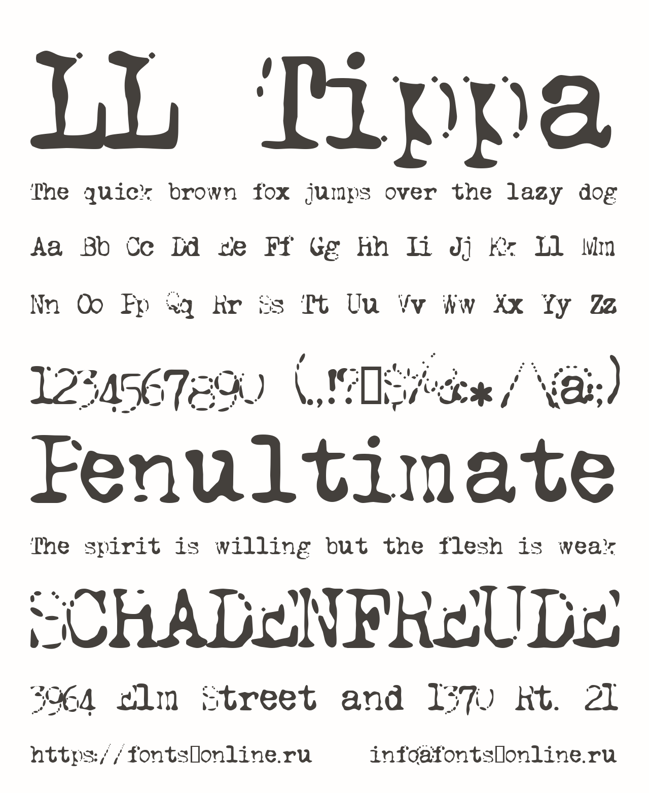 Шрифт LL Tippa. Гарнитура содержит 1 файл и поддерживает 20 языков. Можно использовать в не коммерческой деятельности. Разработка LL Tippa велась Markus Schr�ppel.