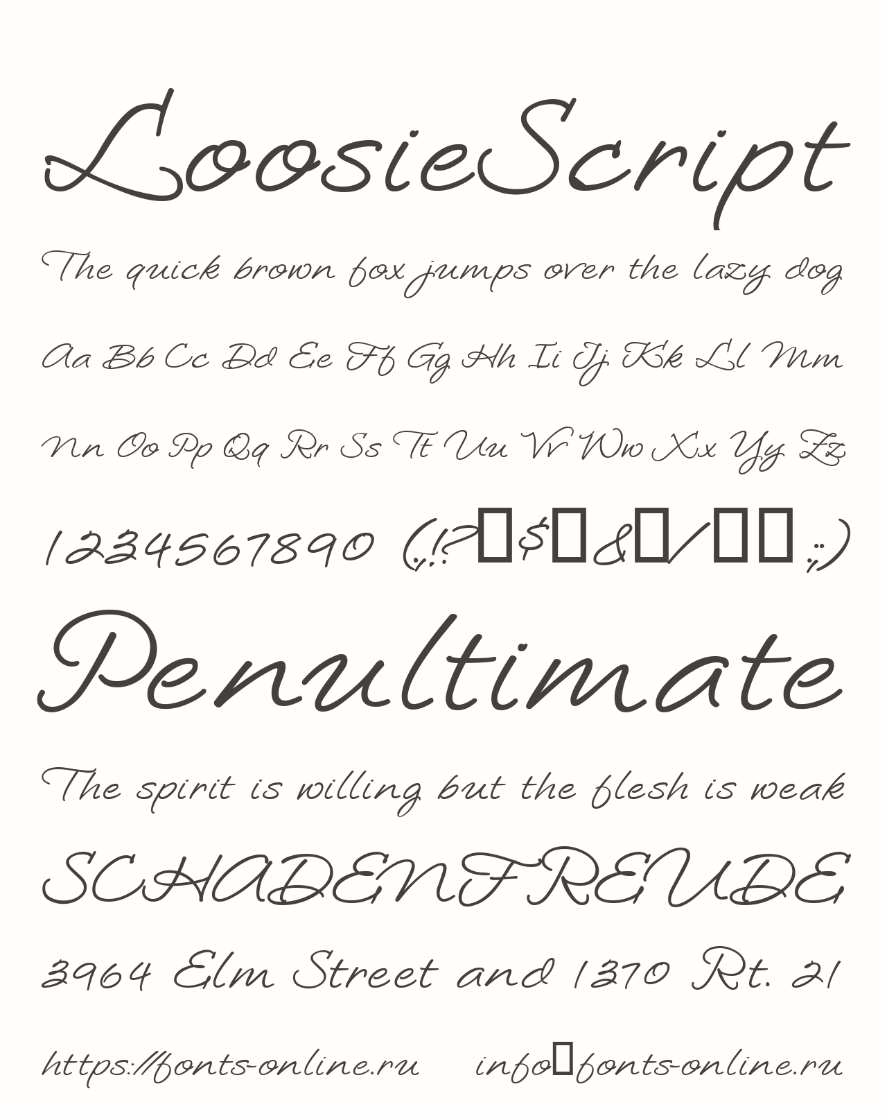 LoosieScript PinterestFacebookTwitter Скачать LoosieScript Тестировать LoosieScript Сообщить об ошибке Шрифт LoosieScript. Гарнитура содержит 1 файл и поддерживает 12 языков. Copyright Generated by Fontographer 4.0 Дополнительная информация Категории Каллиграфические шрифты Рукописные шрифты Языки Английский Зулу Индонезийский Корнский Оромо Руанда Рунди Северный ндебеле Сомалийский Суахили Узбекский Шона
