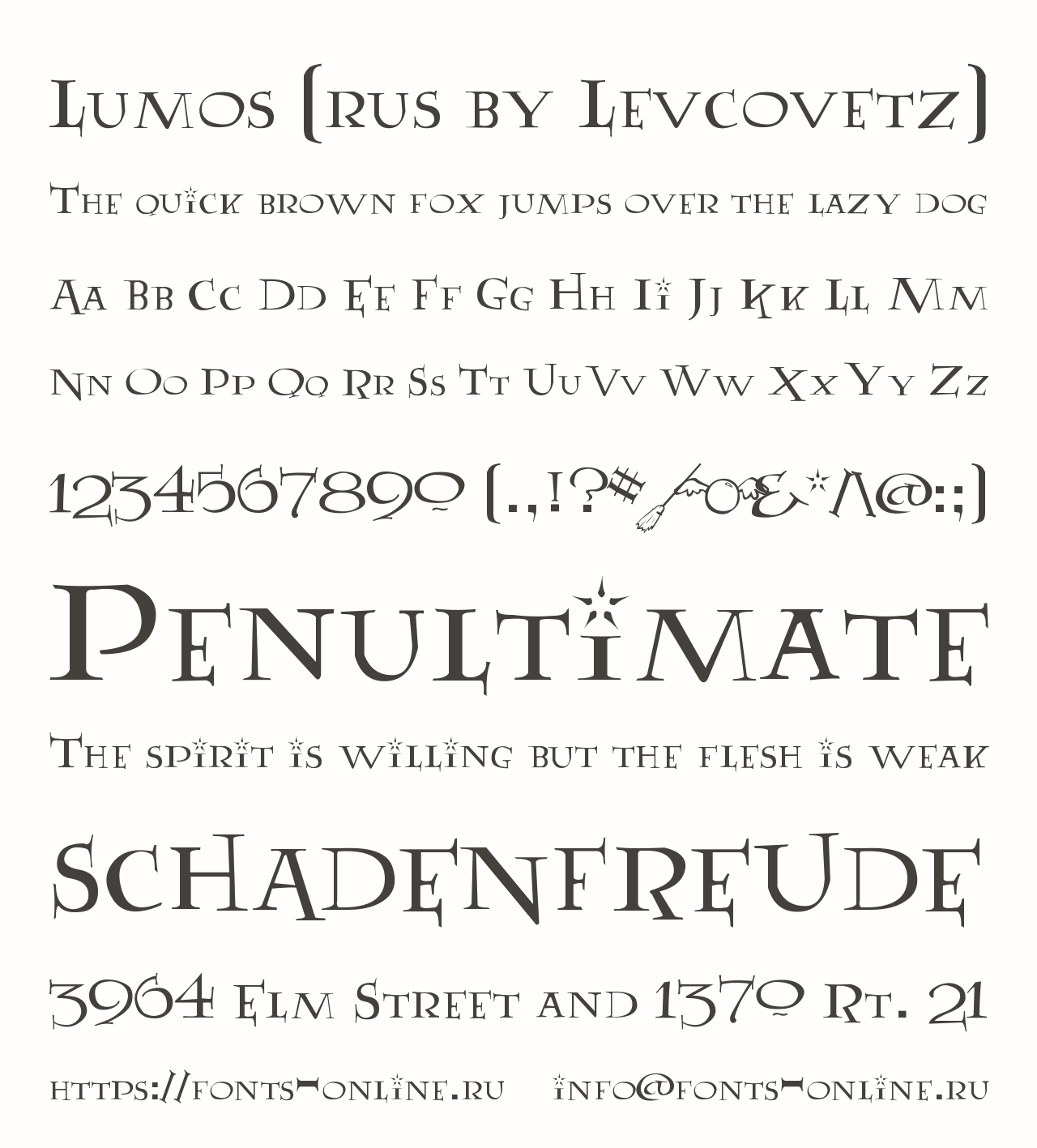 Шрифт Lumos (rus by Levcovetz). Гарнитура содержит 1 файл и поддерживает 12 языков.