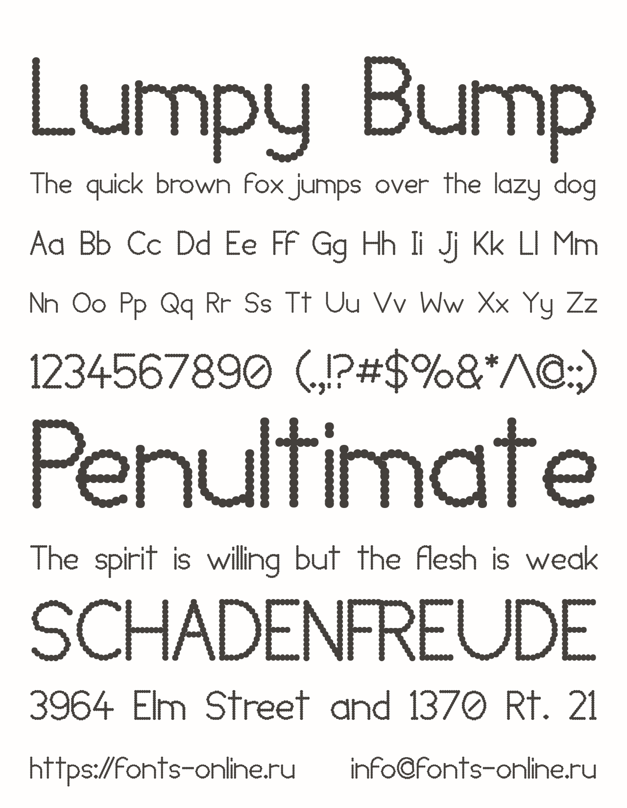 Шрифт Lumpy Bump. Гарнитура содержит 1 файл и поддерживает 12 языков. Можно использовать в коммерческой и не коммерческой деятельности.