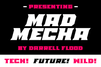 Шрифт Mad Mecha. Гарнитура содержит 4 файла и поддерживает 36 языков. Можно использовать в не коммерческой деятельности. Разработка Mad Mecha велась Darrell Flood.
