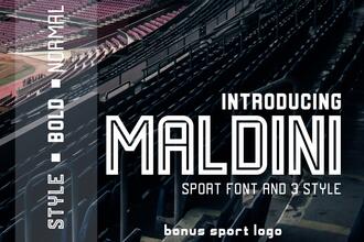 Шрифт MALDINI. Гарнитура содержит 3 файла и поддерживает 12 языков. Можно использовать в не коммерческой деятельности. Разработка MALDINI велась Eknoji Studio.