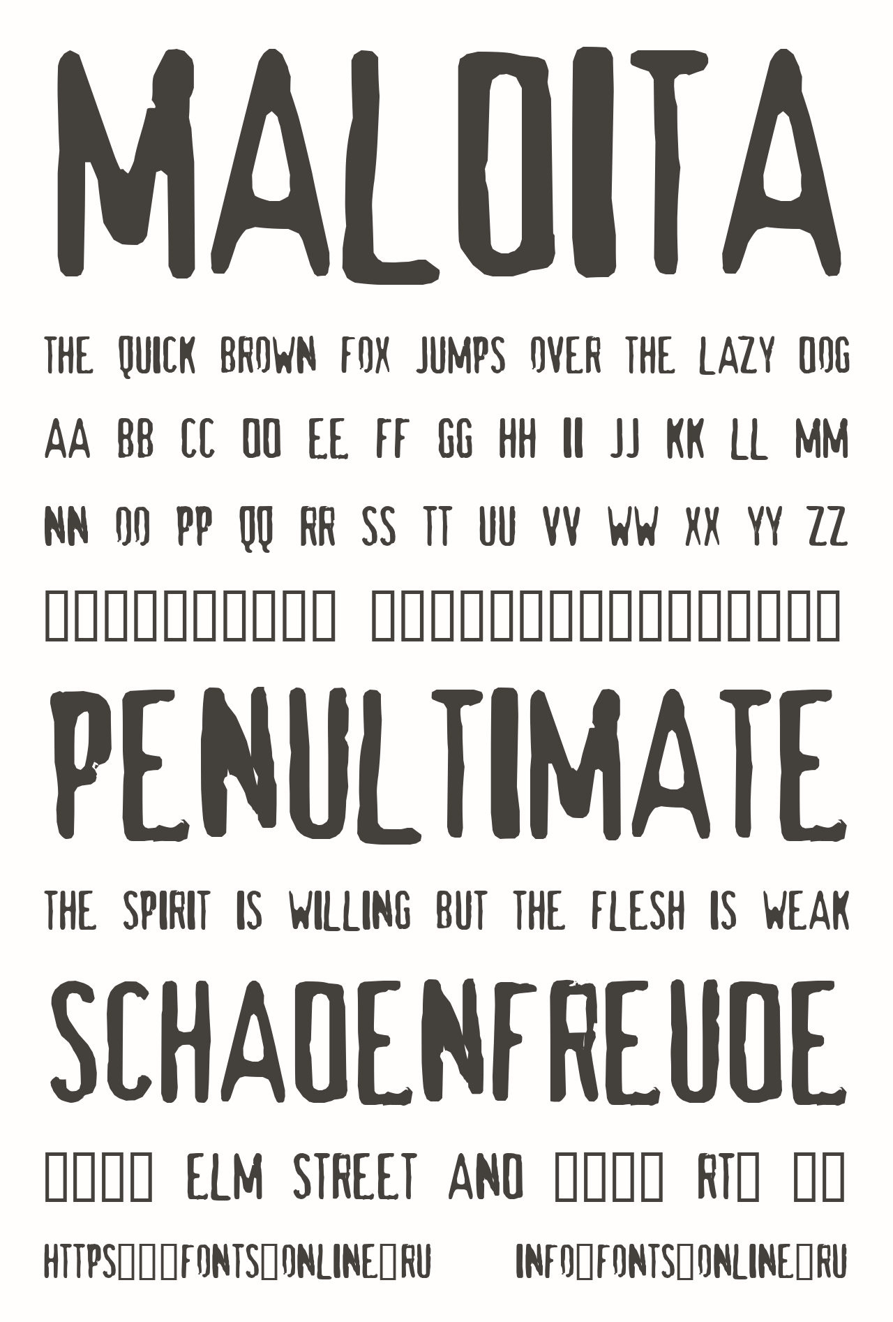 Шрифт maldita. Гарнитура содержит 1 файл и поддерживает 12 языков. Можно использовать в коммерческой и не коммерческой деятельности.