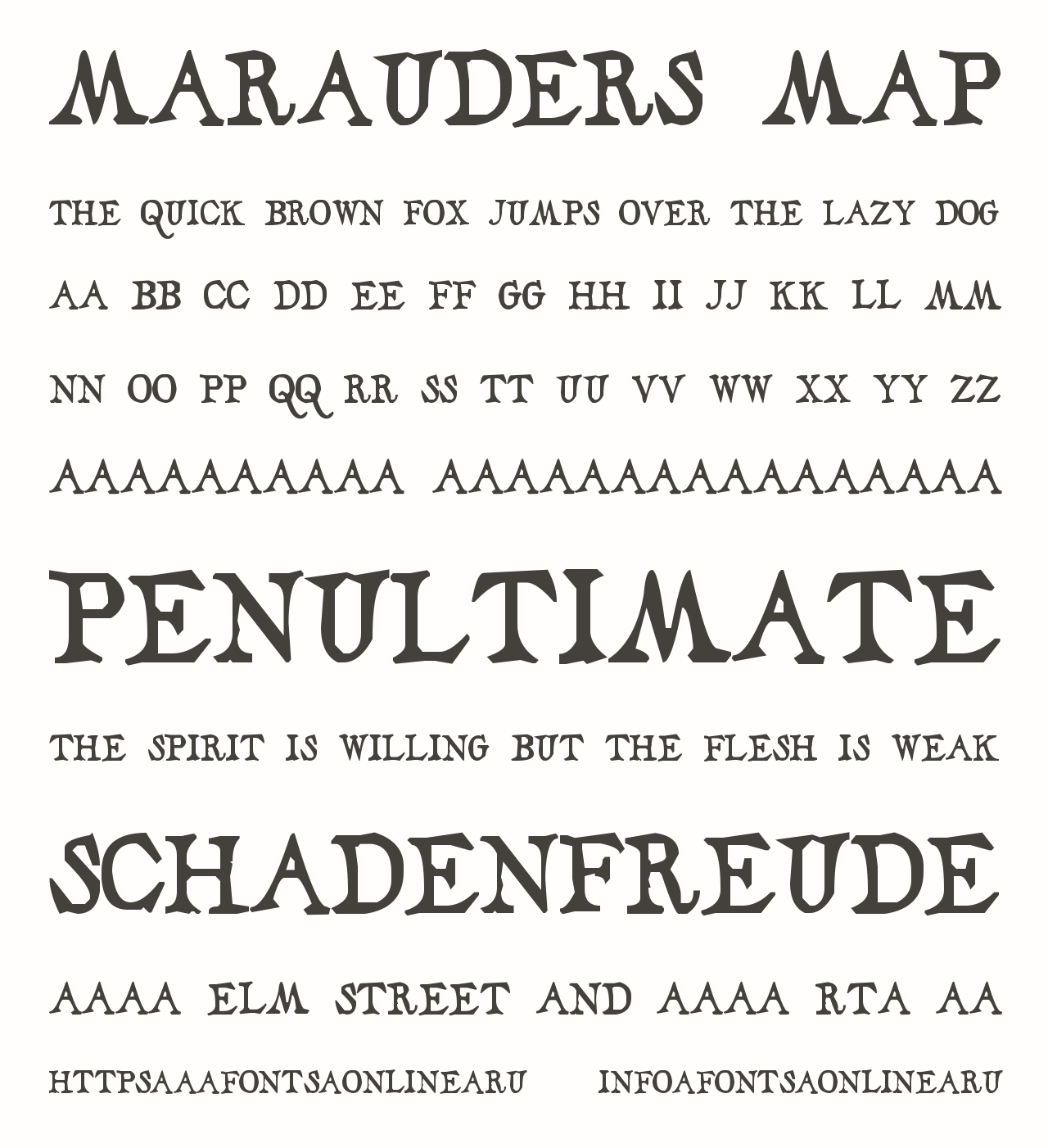 Marauders Map PinterestFacebookTwitter Скачать Marauders Map Тестировать Marauders Map Сообщить об ошибке Шрифт Marauders Map. Гарнитура содержит 1 файл и поддерживает 15 языков. Описание Моя попытка воссоздать шрифт с Карты Мародёров из «Гарри Поттера» и кириллизацию к нему. Есть только буквы и только капсом Copyright by Pavel Levkovets Дополнительная информация Категории Тематические шрифты Шрифты из игр Шрифты из фильмов Шрифты для заголовков Шрифты для текста Языки Английский Болгарский Зулу Индонезийский Корнский Оромо Руанда Рунди Русский Северный ндебеле Сомалийский Суахили Узбекский Чеченский Шона