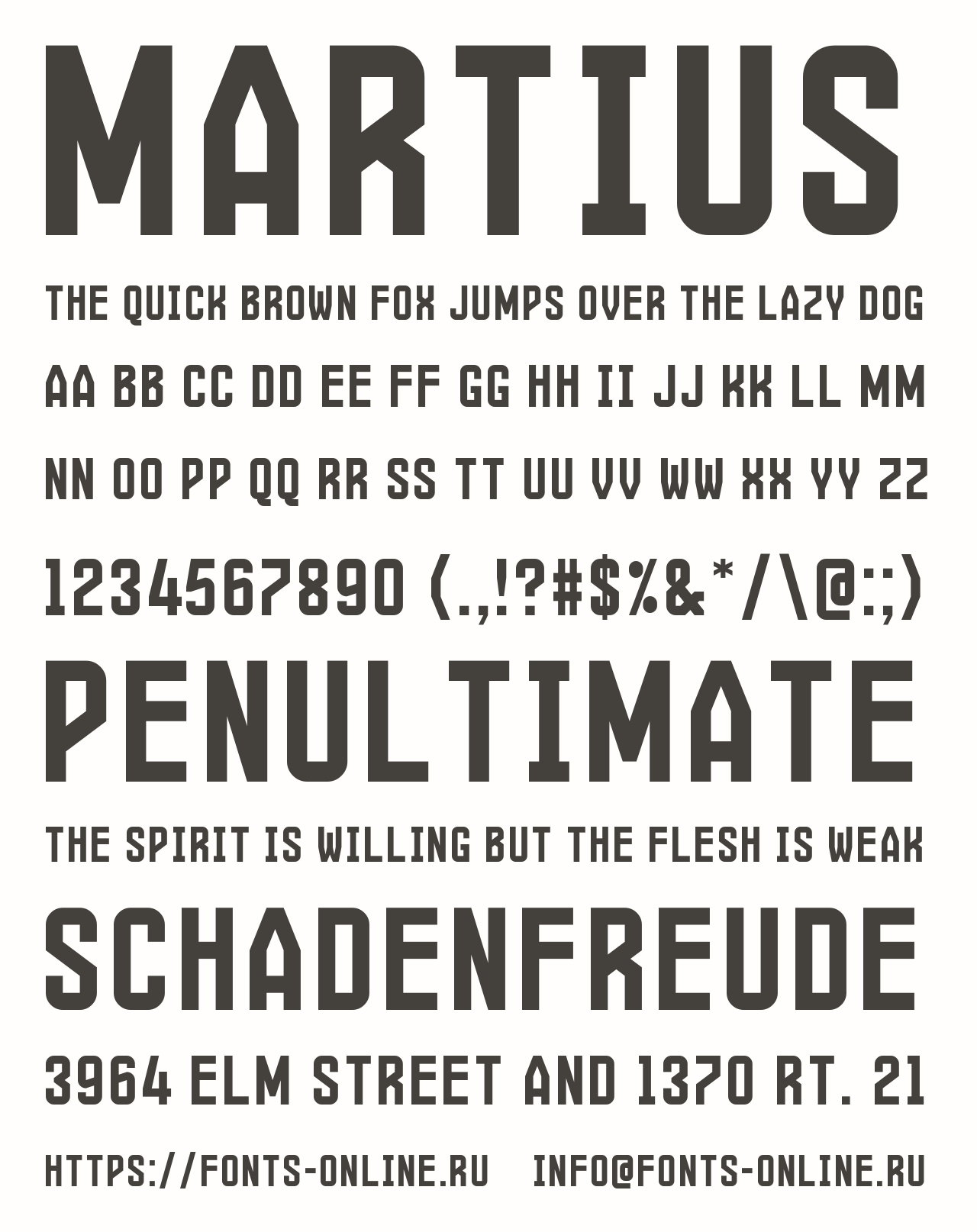 Шрифт Martius. Гарнитура содержит 2 файла и поддерживает 45 языков. Лицензия SIL OFL 1.1. Можно использовать в коммерческой и не коммерческой деятельности. Разработка Martius велась GGBotNet.