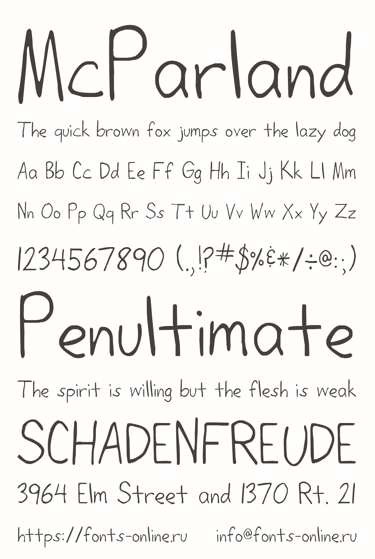Шрифт McParland. Гарнитура содержит 1 файл и поддерживает 12 языков. Можно использовать в коммерческой и не коммерческой деятельности.