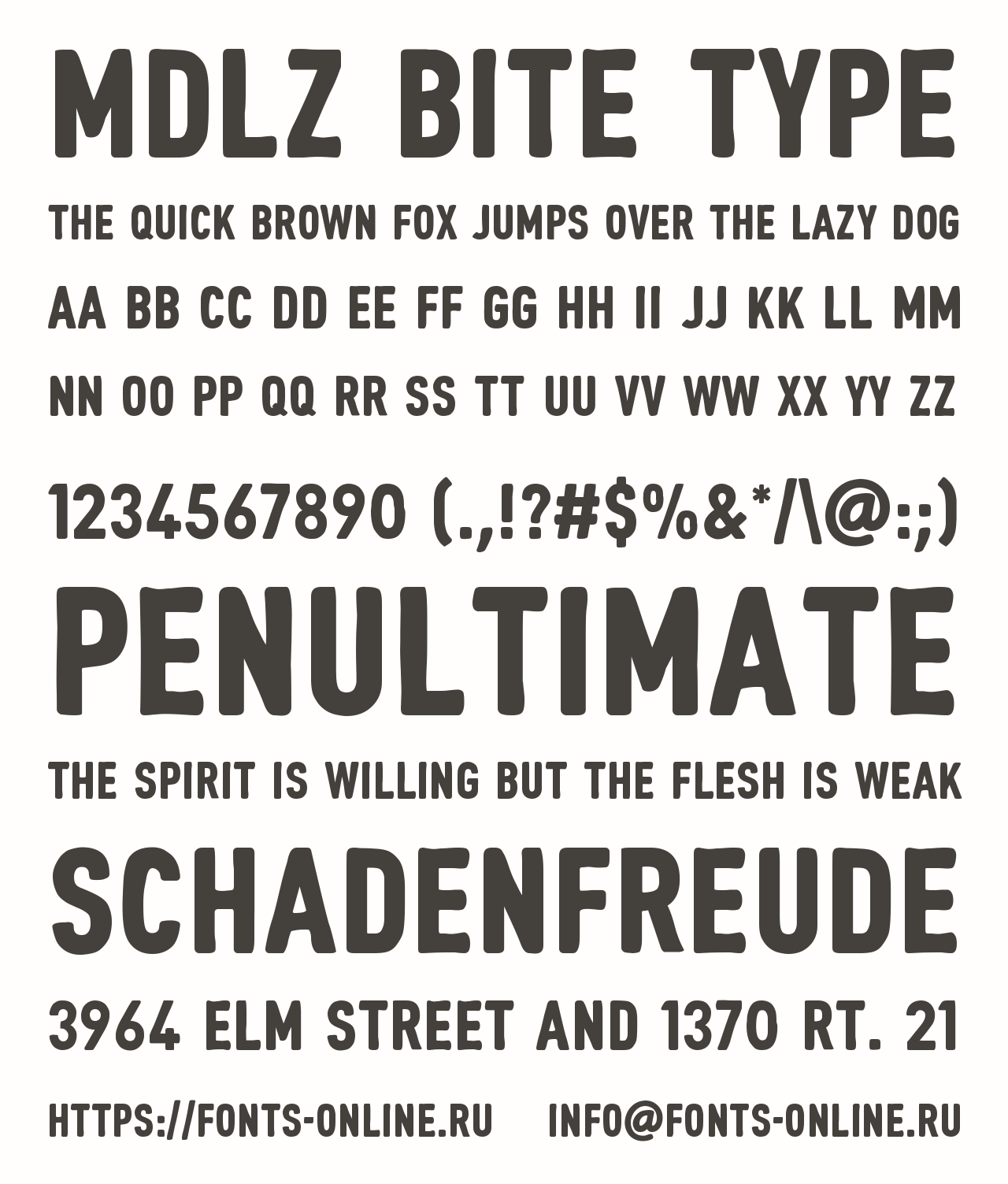 MDLZ BiteType is a typeface specifically designed for Mondelēz International. This typeface has been designed with a perfect touch of imperfect lines. All rights reserved to Mondelēz International.Дополнительная информация